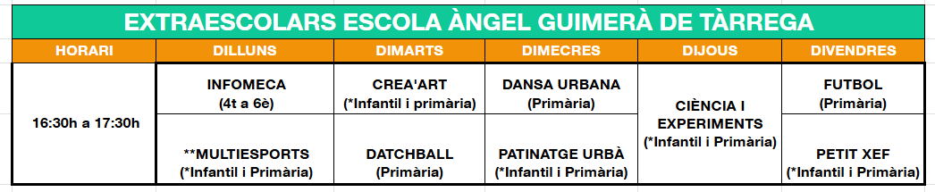 - Oferta d'activitats extraescolar de l'Escola Àngel Guimerà – Tàrrega