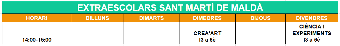 - Oferta d'activitats extraescolar de l'Escola el Tallat de Sant Martí