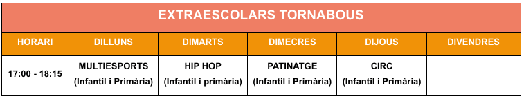 - Oferta d'activitats extraescolar de l'Escola Espígol de Tornabous