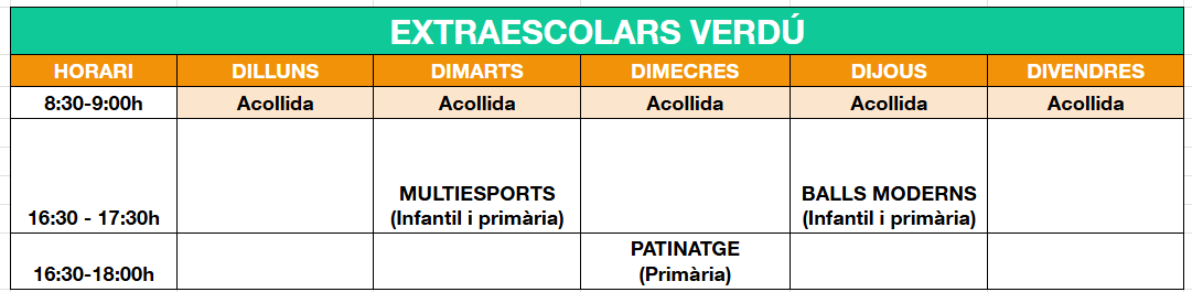 - Oferta d'activitats extraescolar de l'Escola Jardí de Verdú
