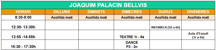 - Oferta d'activitats extraescolar de l'Escola Joaquim Palacín de Bellvís