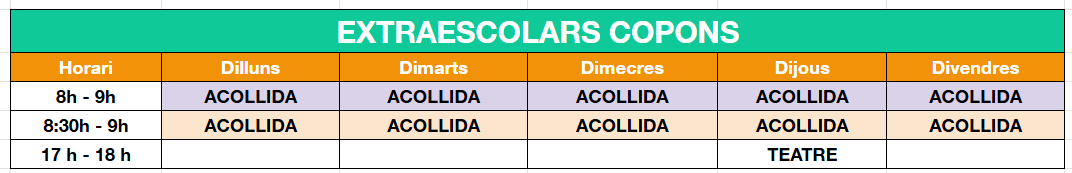 Les quotes d’extraescolars estan calculades tenint en compte els dies festius i de lliure disposició. Els pagaments seran menusals i iguals cada mes, d’octubre a maig.